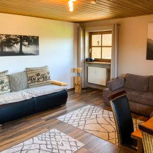 W przestronnym salonie-jadalni apartamentu wakacyjnego Hauzenberg (30 m2) znajduje się stół jadalny z 5 krzesłami, rozkładana sofa o wymiarach 160x200 cm oraz rozkładana sofa o wymiarach 160x235 cm. Obok szafki w salonie zamontowano telewizor z dużym ekranem. Odtwarzacz DVD, liczne płyty DVD, CD, książki i gry planszowe zapewniają rozrywkę.